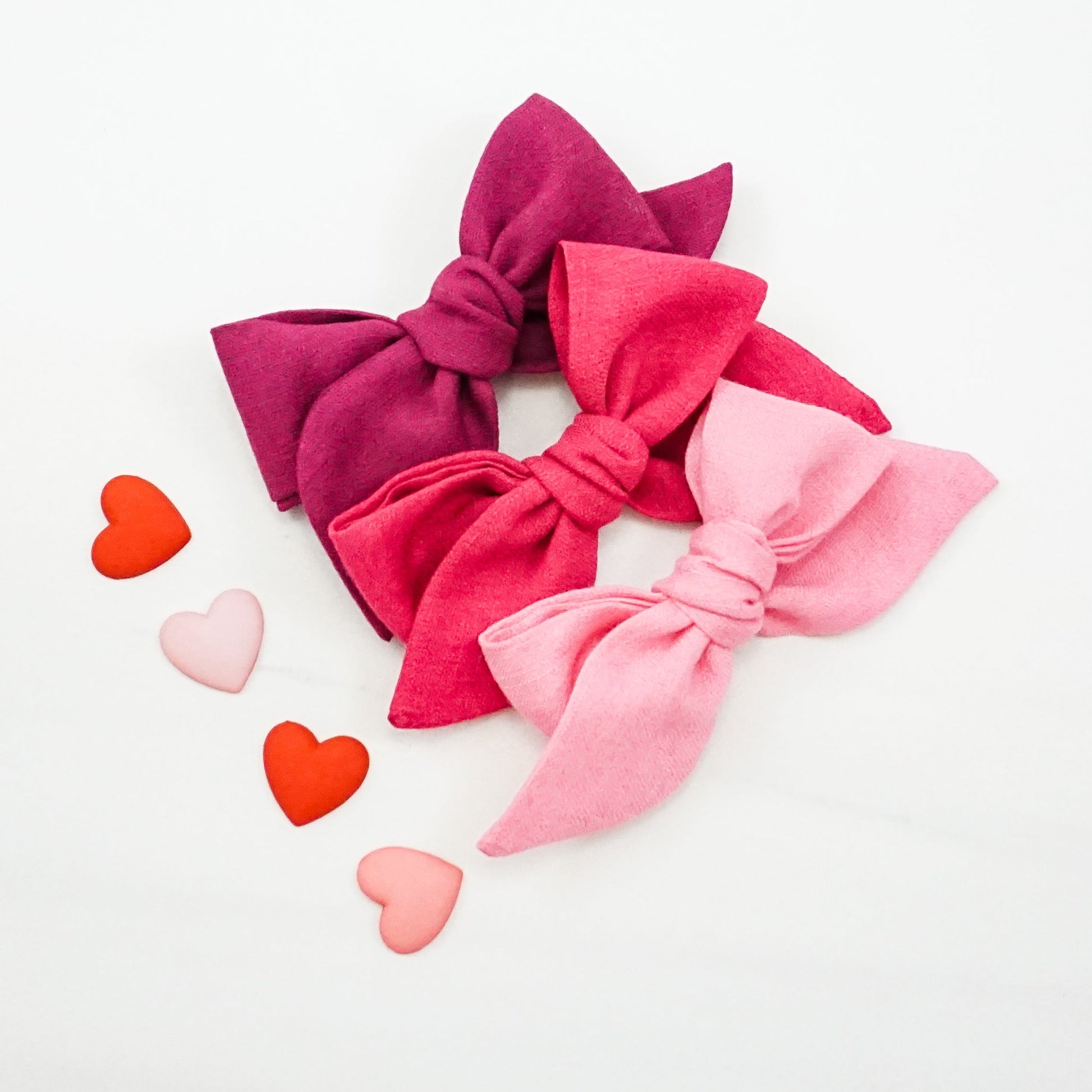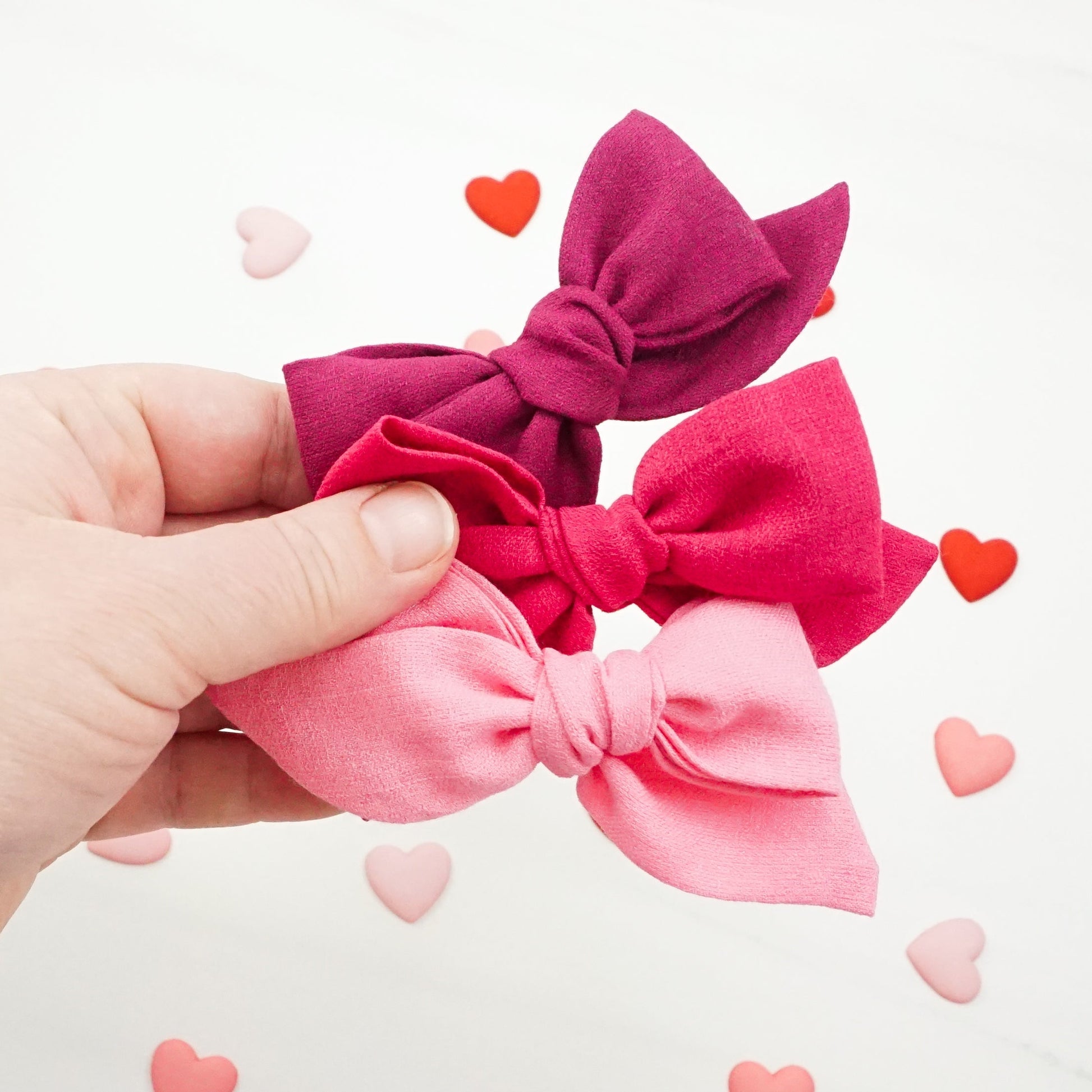 Each bow is personally cut, sewn, pressed, handtied, and secured so it can't be pulled apart.
