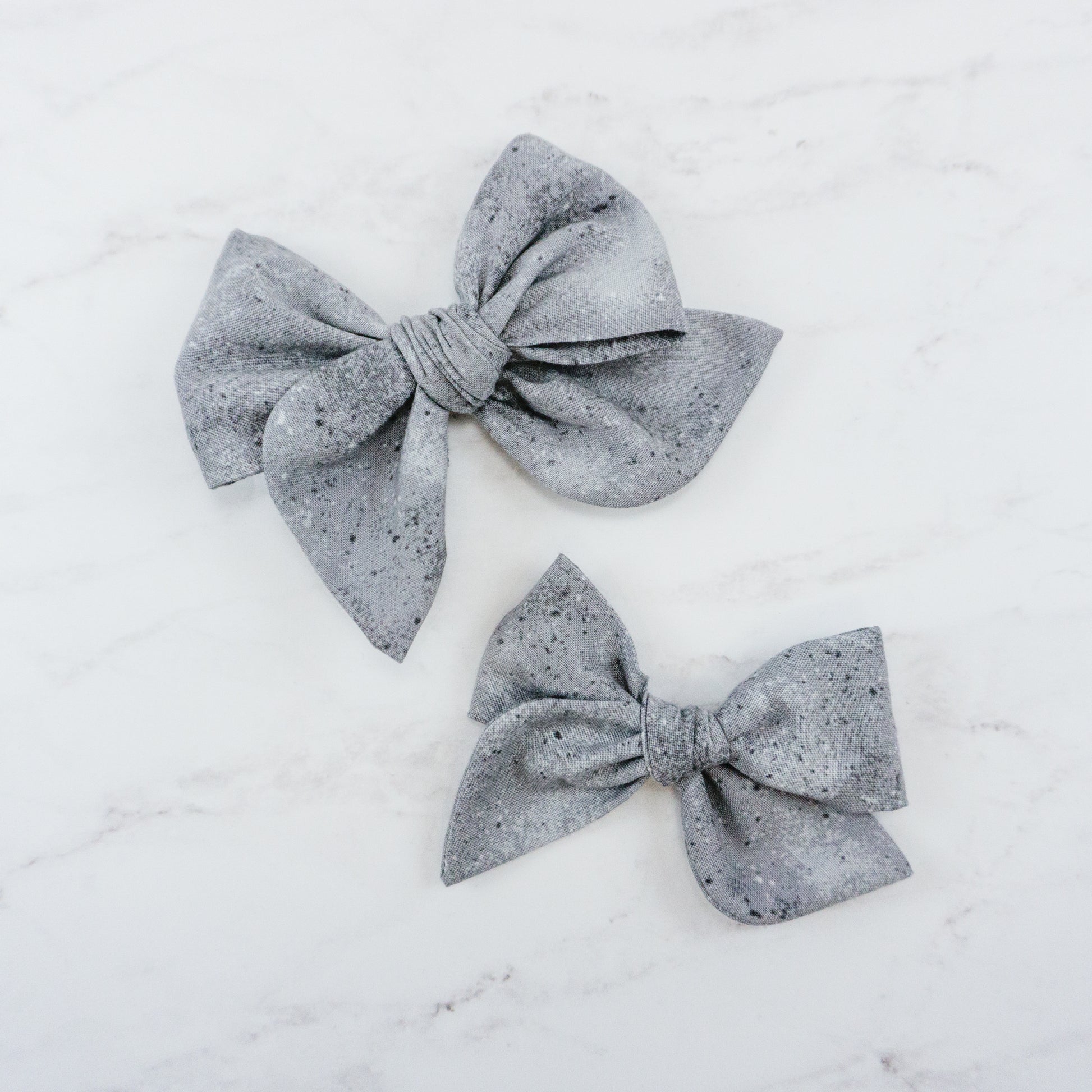 This handmade fabric bow is a perfect and classic accessory that can be worn year round and can stand the test of time, as fabric bows have for decades. These bows come in two sizes; large and small (the model is age 3 wearing a large bow in the pink speckle). Each bow is personally cut, sewn, pressed, handtied, and secured so it can't be pulled apart.